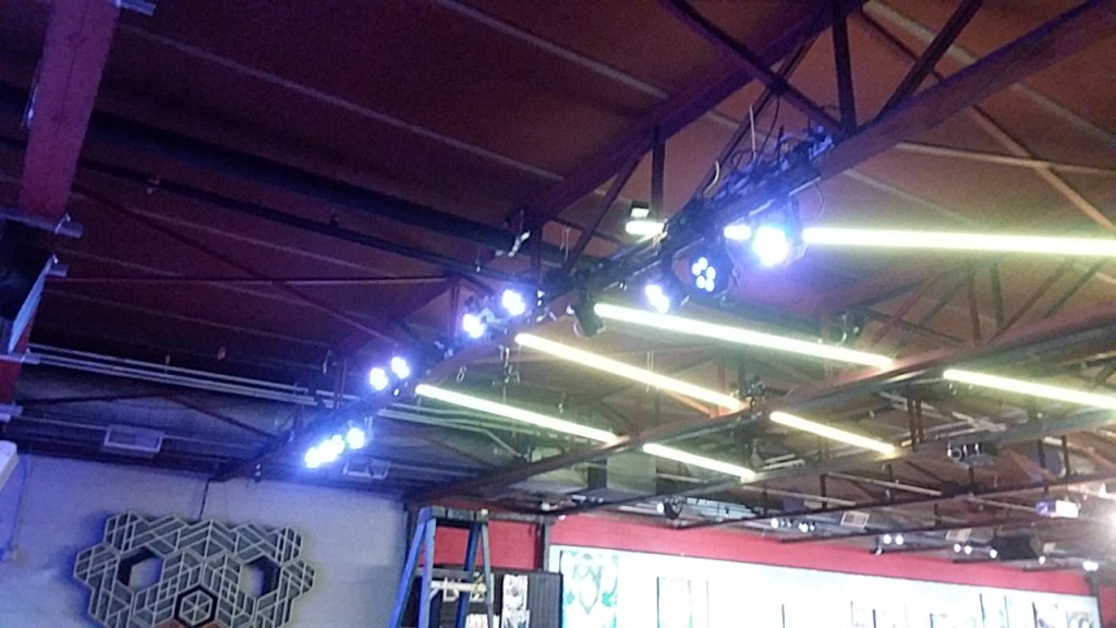 - Lighting: 2 ADJ QA5 IP on wired DMX controller