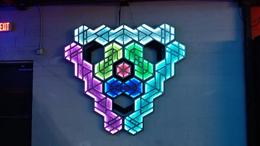 - 50′ Artwall mapped across w/ Epson H910A projector using Resolume